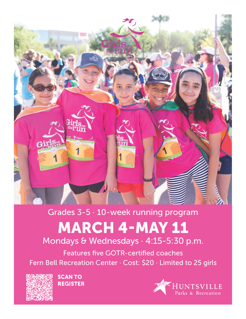 HUNTSVILLE – The City of Huntsville’s Parks & Recreation is bringing back Girls on the Run, billed by the city as an “empowering journey” for girls in grades 3-5. According […]
