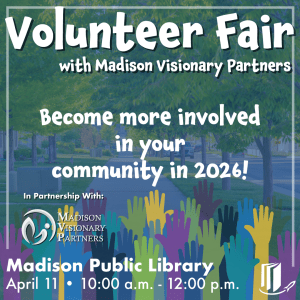 “We are thrilled to collaborate with Madison Visionary Partners to host this Volunteer Fair,” Reagle said. “Libraries are community connectors, and this event reflects our mission to support civic engagement and lifelong involvement. We look forward to welcoming residents and helping them find meaningful opportunities to serve.”