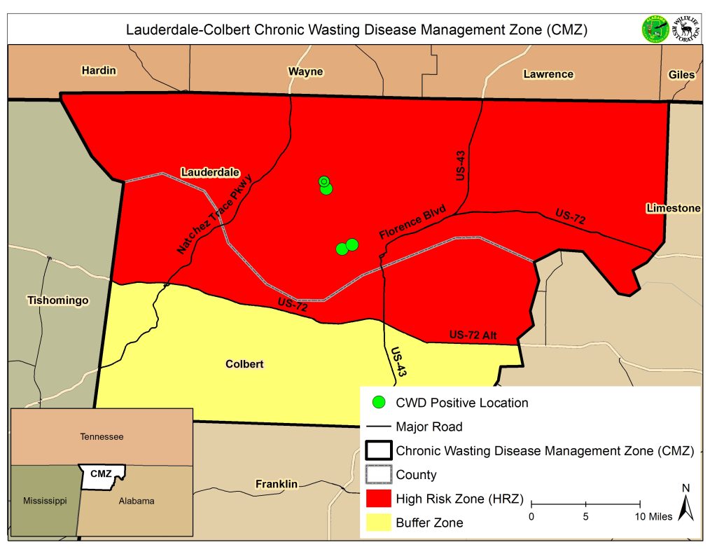 For sampling locations within the management zone, visit www.outdooralabama.com/cwd/