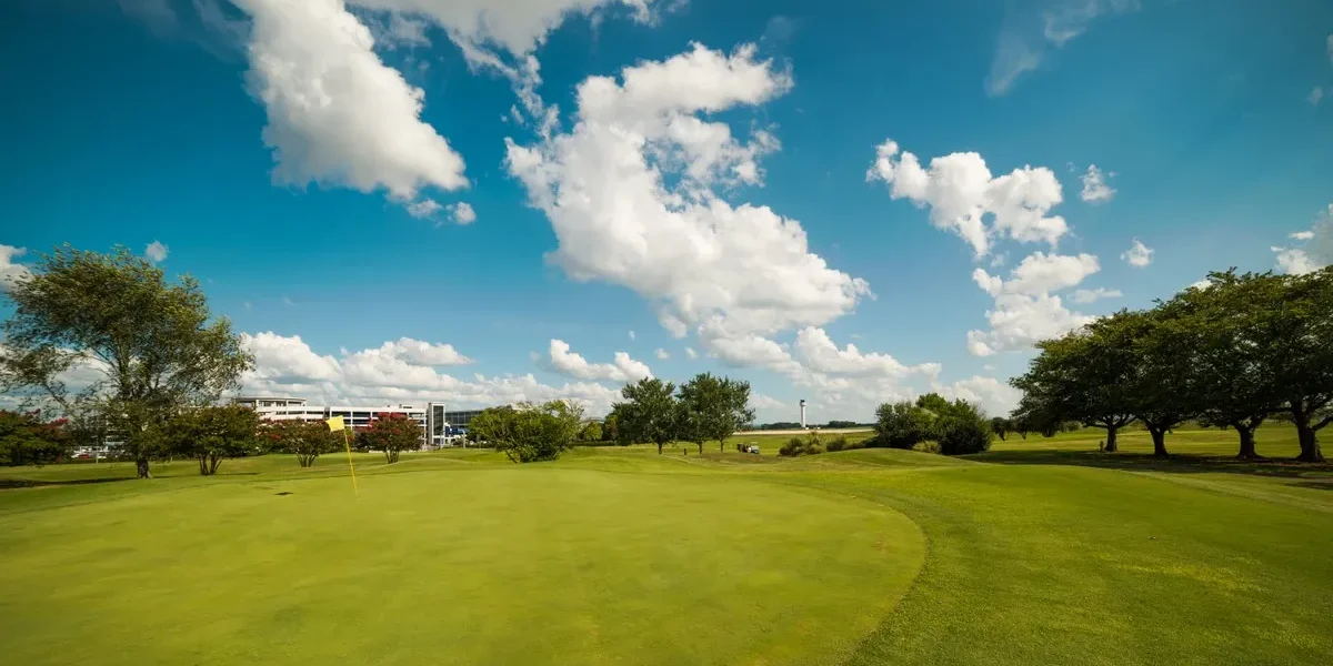 Located next to Huntsville International Airport’s west runway, Sunset Landing is known for its distinctive setting where golfers play alongside views of arriving and departing aircraft. The 18-hole course features 6,803 yards of native grass fairways and bentgrass greens.