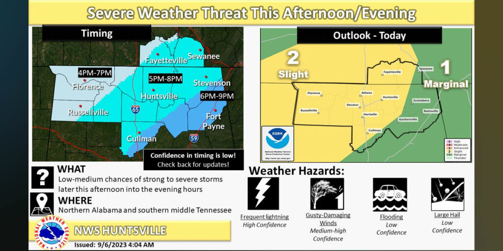 HUNTSVILLE — Strong to severe storms are possible throughout the Tennessee Valley this afternoon into the evening hours, according to the National Weather Service Huntsville office. The storms could bring […]