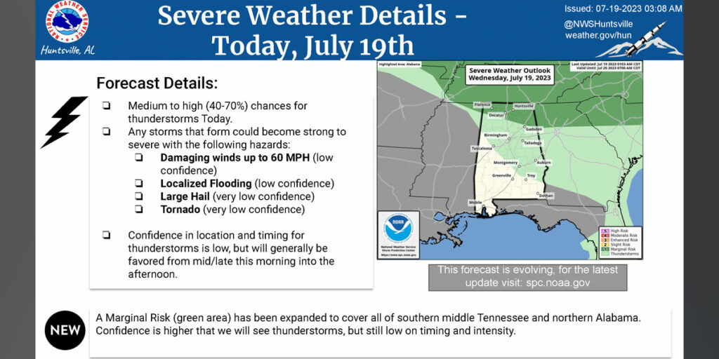HUNTSVILLE — As hundreds of people woke up this morning without electricity, the weather forecast said there is a chance for thunderstorms through Friday. “We will remain in an active […]