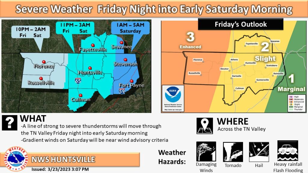 HUNTSVILLE — It’s looking like a rough start to the weekend for the Tennessee Valley. The National Weather Service’s Huntsville office is calling for strong to severe storms moving into […]
