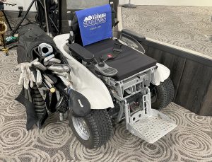 The VertaCat was designed by a paraplegic athlete who wanted to play golf. The mobility device doubles as a cart to traverse the golf course. Then the golfer can use the electric stand-up assist to raise the person into position to hit the golf ball. Another feature allows the golfer to fine-tune his position in relation to the ball.