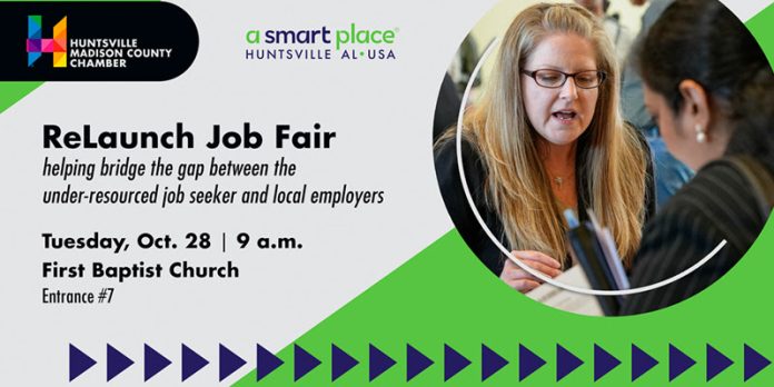The fair is Oct. 28 at 9 a.m. at Huntsville’s First Baptist Church on Governors Drive. It is free to all job seekers. Register HERE or at the door.