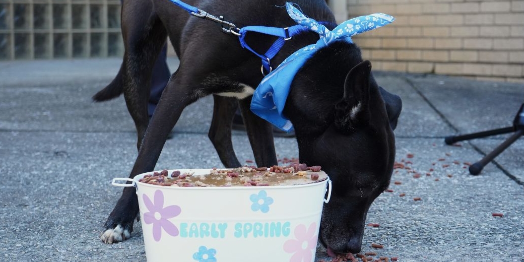 Cosmo, who is currently available for adoption, was the star of the show, with organizers playfully acknowledging the pressure placed on his prediction. As he finished off the spring bowl, cheers followed.